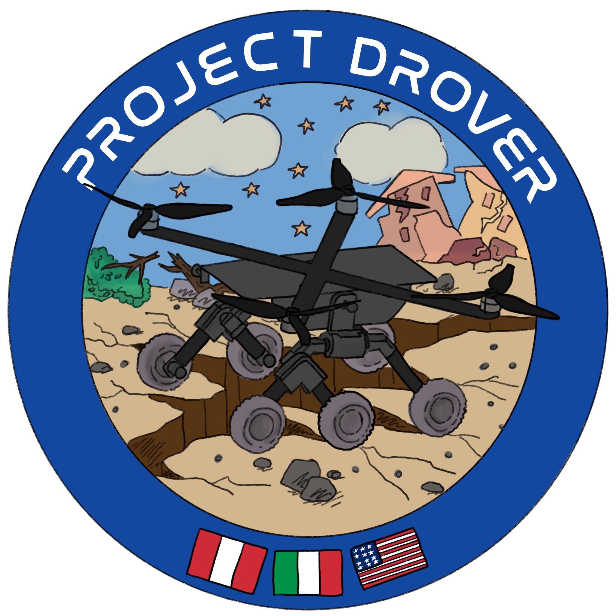 The primary objective of Project DROVER is to design, build, and fly a drone-rover hybrid prototype designed to enhance search and rescue operations capable of aerial and terrestrial navigation to locate and assist people in distress. This prototype will demonstrate the unique capability to land and drive when traversal via flying is not possible. Additionally, the vehicle will showcase the ability to execute turning maneuvers while airborne and land at an inclined angle. This hybrid vehicle holds the potential to revolutionize search and rescue operations by harnessing the energy efficiency of a rover combined with the agile air mobility of a drone.