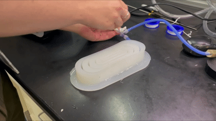 This project focuses on the design and fabrication of a soft, shape-changing robotic platform capable of transitioning between multiple locomotion modes through controlled morphological reconfiguration. The robot is designed to operate in three primary modes: a flat, rectangular configuration that enables inching locomotion; a closed cylindrical configuration that allows rolling; and a hybrid cylindrical configuration that deploys telescoping leg actuators for legged locomotion. My role centers on the mechanical design of the telescoping leg actuators and the fabrication of silicone-based pneumatic elements that inflate and deflate to drive shape change and motion. The platform serves as a testbed for exploring closed-loop shape control in soft robotics, integrating mechanical design, soft-material fabrication, and actuation constraints to enable adaptable, multi-modal locomotion.