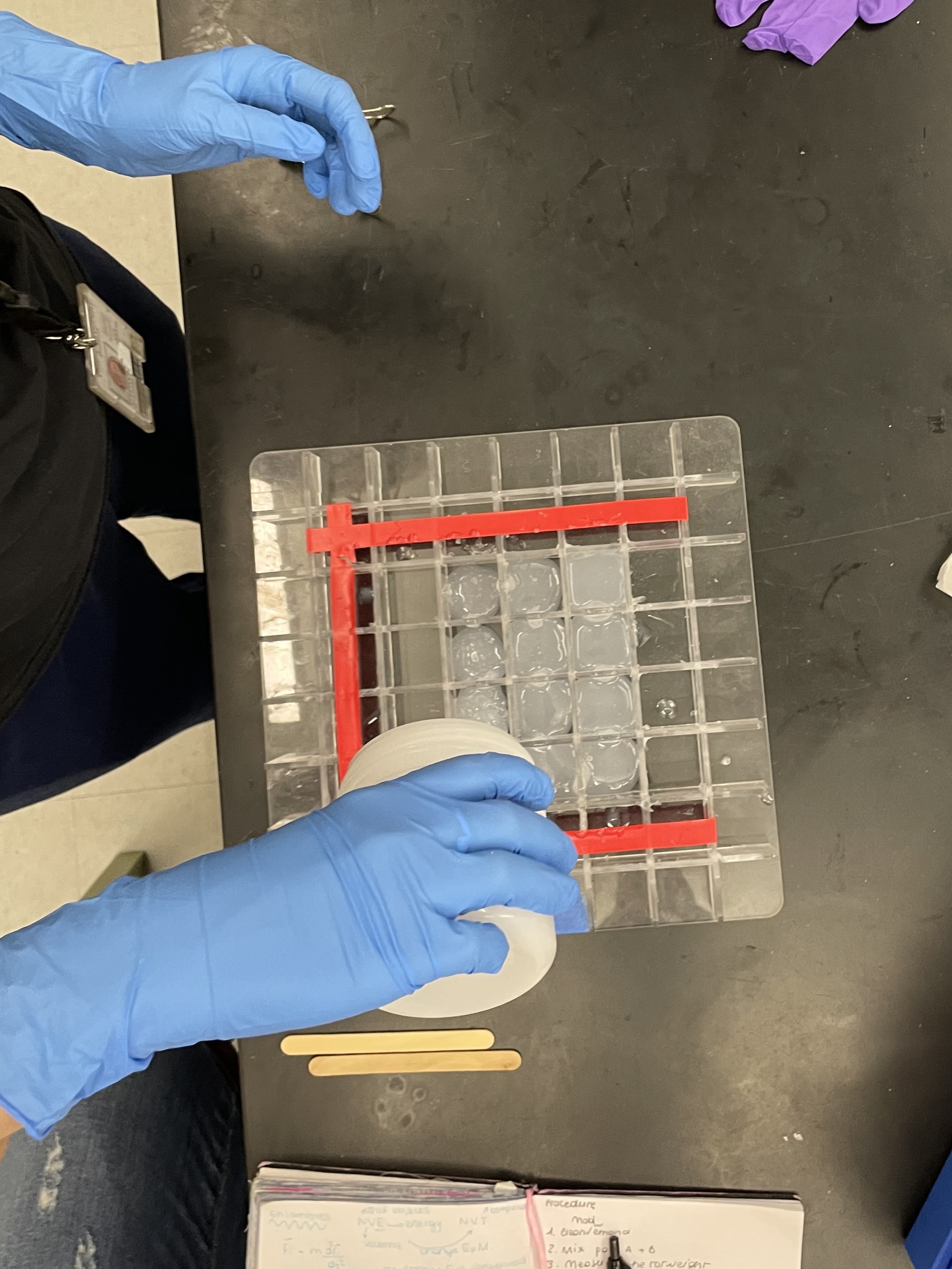 This is one of the first iterations of the molds, the picture shows both top and bottom molds as well as the silicon product!